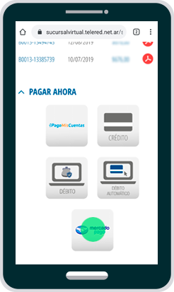 seleccioná la opción MIS FACTURAS4Deslizá la pantalla hacia abajo, y en las opciones de PAGAR AHORA, presioná el botón de MERCADO PAGO!Si aún no estás registrado en Mercado Pago, podés registrarte haciendo click aquí!Si aún no estás registrado en Mercado Pago, podés registrarte haciendo click aquí5Seleccioná tu número de cliente, y presioná el botón ENVIAR6Verificá que los datos estén correctos, y luego presioná el boton PAGAR7Para pagar, seleccioná la opción de pago que más te convenga8Una vez realizado el pago, obtendrás tu número de operación -
